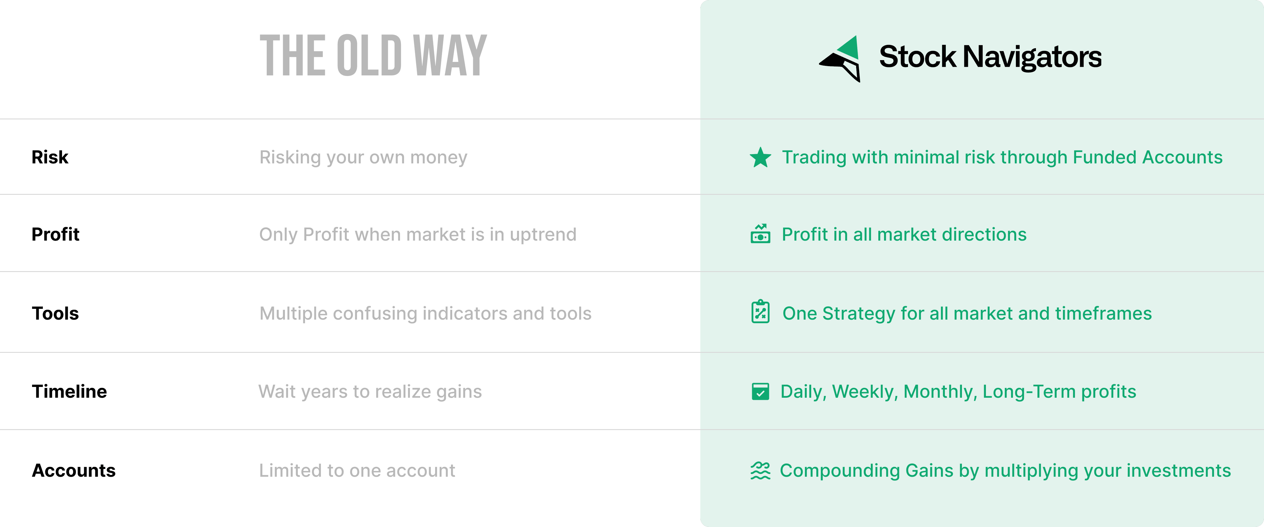 Stock Navigators may express or utilize testimonials or descriptions of past performance, but such items are not indicative of future results or performance, or any representation, warranty or guarantee that any result will be obtained by you. These results and performances are NOT TYPICAL, and you should not expect to achieve the same or similar results or performance. Your results may differ materially from those expressed or utilized by Stock Navigators due to a number of factors. Please review the information contained in our Terms of Services and Disclaimers.